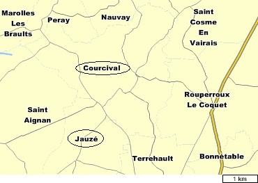 Au milieu du XVIIe siècle, c’est entre autres à Saint-Cosme-en-Vairais, situé à quelques kilomètres de Jauzé et de Courcival, que Robert Giffard, seigneur de Beauport, venait recruter des colons pour la Nouvelle-France. C’est ainsi qu’au fil des ans, environ 35 habitants de ce village, issus de 13 familles, s’embarquèrent pour l’Amérique5.